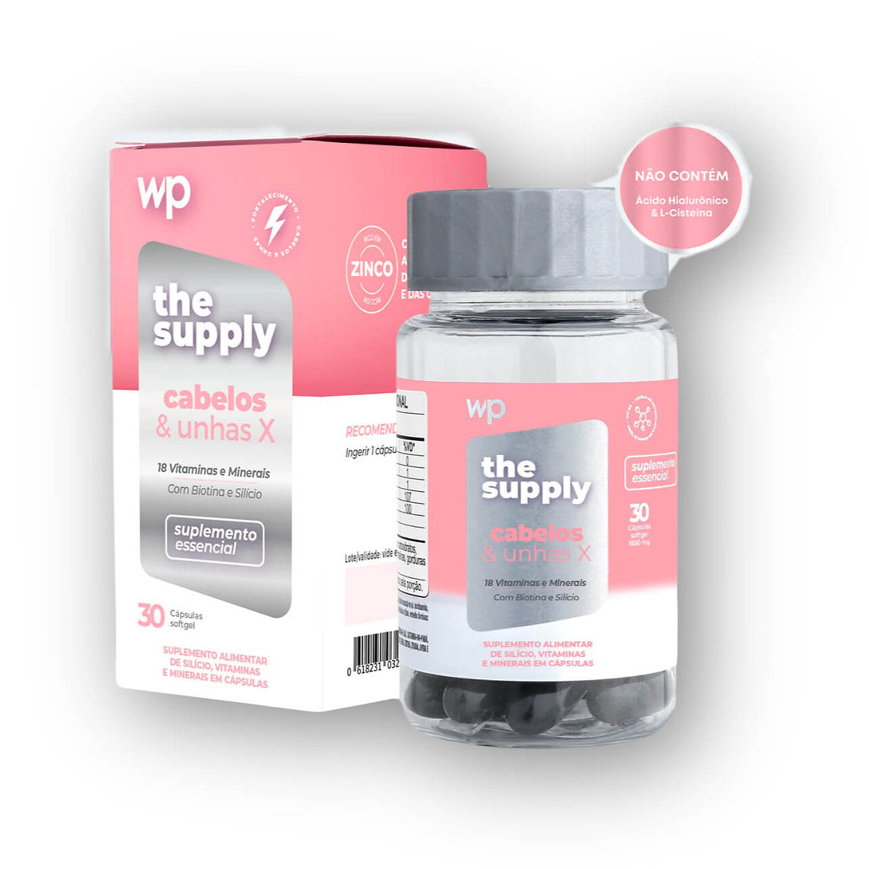 The supply Cabelos&Unhas X tem cápsulas de rápida absorção (softgel) e blend de 18 vitaminas e minerais para fortalecer cabelos e unhas.