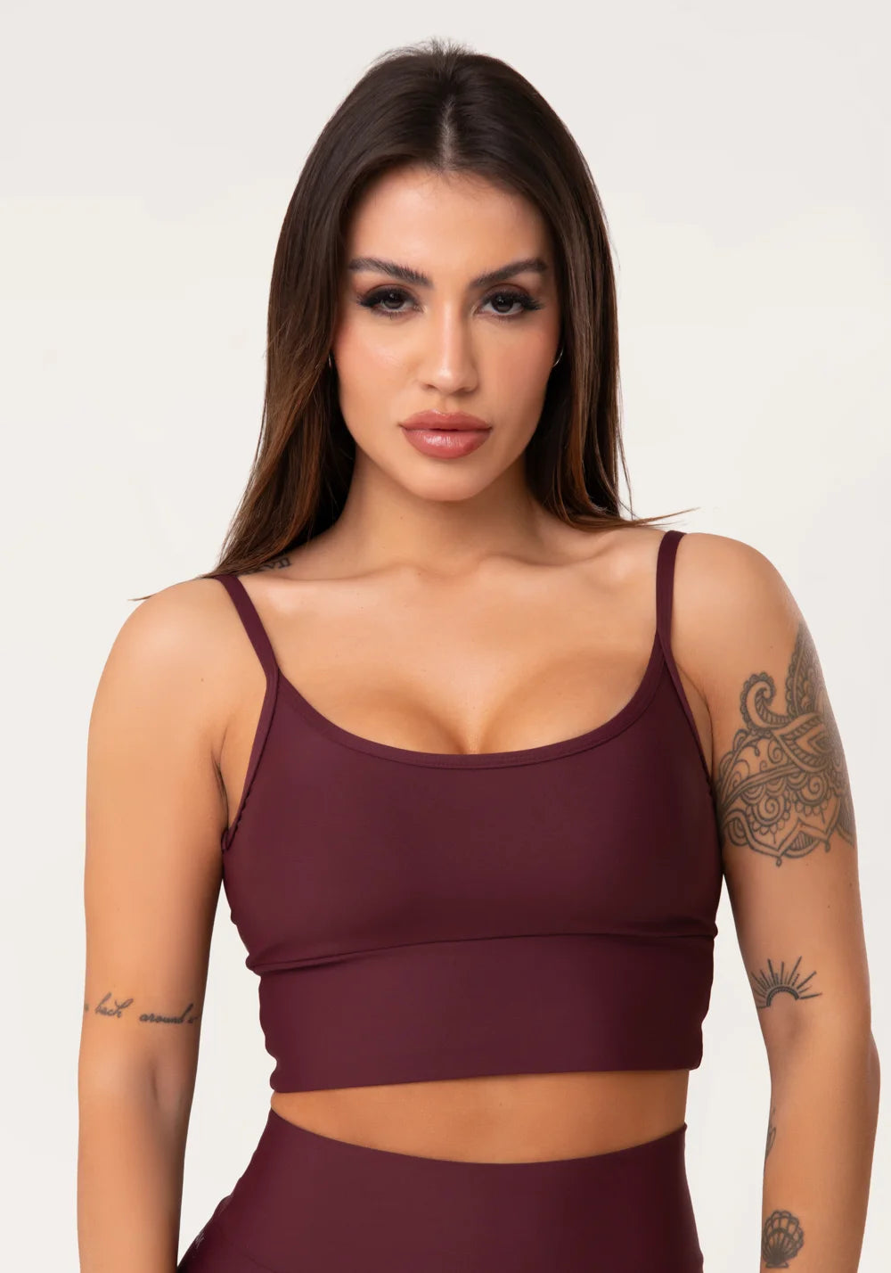 Encontre a leveza e a fluidez nos movimentos com o Top Fitness Vinho Com Bojo. Este top fitness combina design clássico e moderno, oferecendo elegância e funcionalidade. Seu ajuste perfeito proporciona muito conforto, tornando-o ideal para treinos intensos. A modelagem com alças finas garante decote delicado, enquanto o cós largo e o bojo removível proporcionam suporte e segurança em todos os movimentos.
